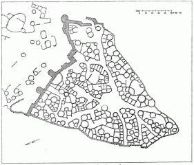 Strassen, Plätzen und einer Befestigungsmauer mit Rundtürmen nachgewiesen
