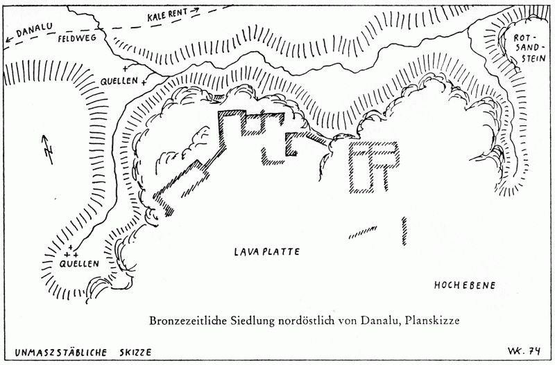Kommentar: Kleiss fand hier Siedlungsreste und eine breite Mauer aus