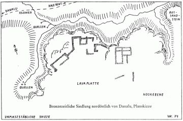 von Bauten, die er aufgrund der altertümlichen Mauertechnik als vorgeschichtlich