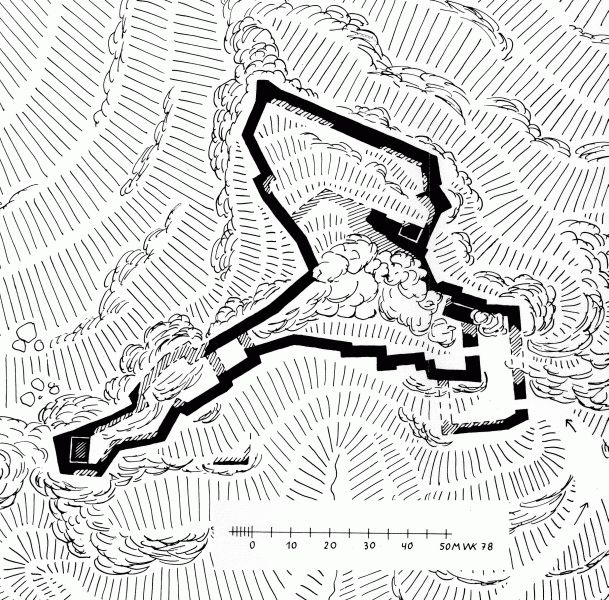 und ist mit einer dicken Festungsmauer aus Bruchsteinen umgeben (MK-031). Im